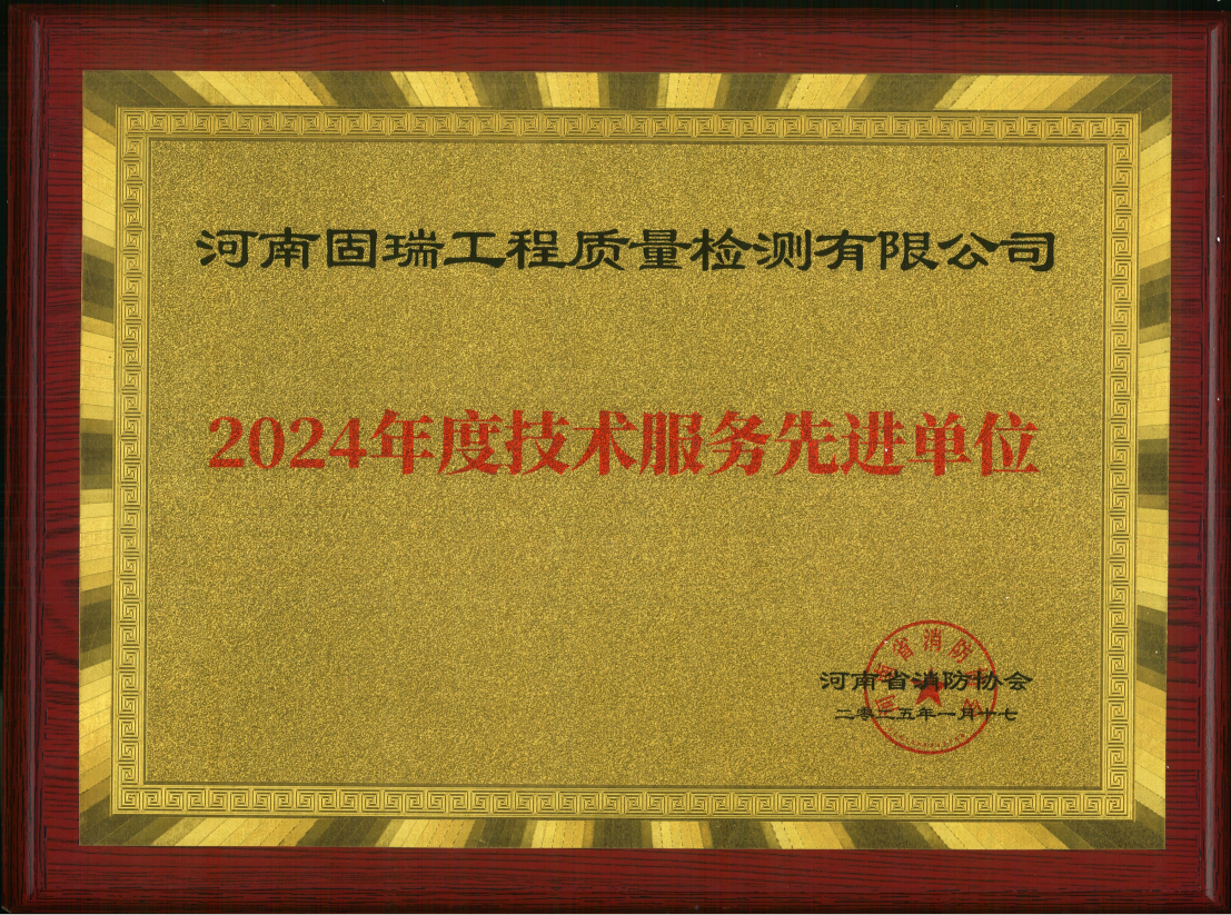 • 熱烈祝賀河南固瑞工程質(zhì)量檢測(cè)有限公司榮獲河南省消防協(xié)會(huì)2024年度技術(shù)服務(wù)先進(jìn)單位!!!