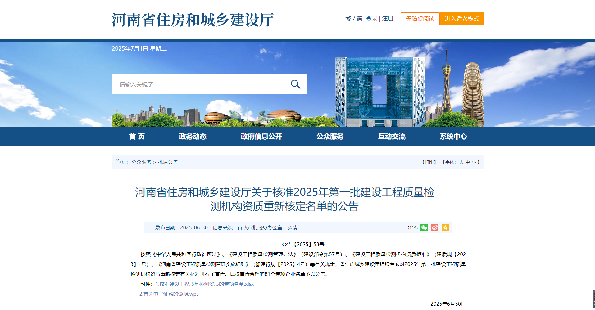 • 熱烈祝賀我司通過(guò)河南省住建廳2025年第一批建設(shè)工程質(zhì)量檢測(cè)機(jī)構(gòu)資質(zhì)重新核定!!!